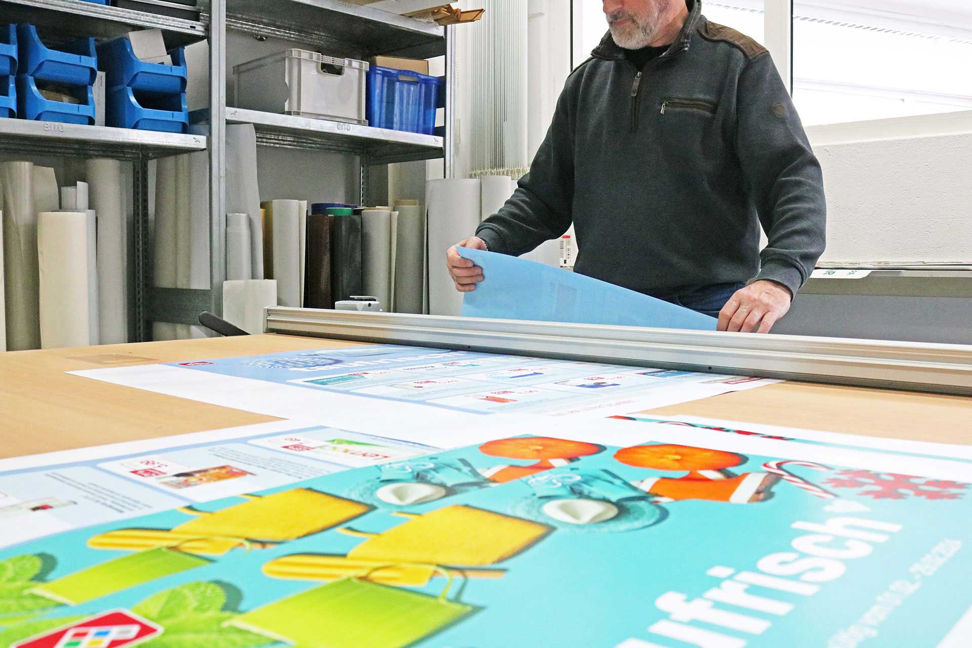 Wir erfüllen Wünsche! Für alles, was sich nicht in ein Schema pressen lässt, erarbeiten wir individuelle Lösungen: stabile Schilder, auffällige Werbeplanen, wehende Fahnen, klassische Fahrzeugbeschriftungen usw. Unsere großformatigen Plotter drucken von der Rolle Poster, Aufkleber, Banner, Roll-Ups, L-Banner und vieles mehr.