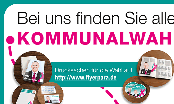- Von Flyer, Broschüren, Plakate, Visitenkarten bis hin zu Roll-Ups, Werbeplanen, Türanhänger ist alles möglich.