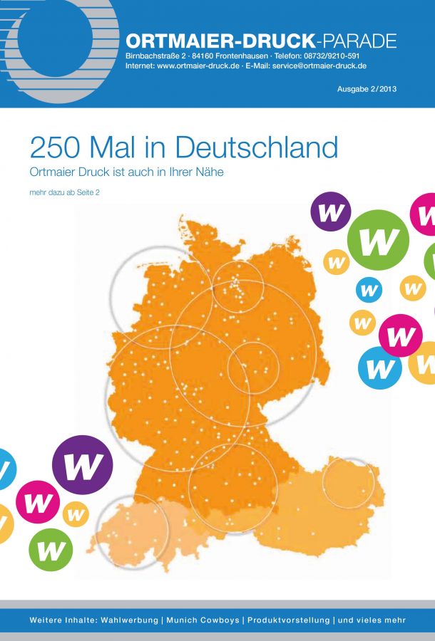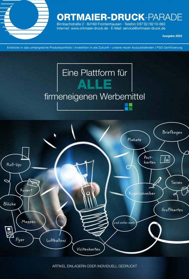 Ortmaier Druck ist ein mittelständisches, familiengeführtes Unternehmen mit Sitz in Frontenhausen im Landkreis Dingolfing-Landau. In diesem ländlichen Raum, bietet unser Unternehmen mit über 140 Mitarbeitern das volle Sortiment in Sachen Druck. Dazu kommen individueller Service und ein attraktives Preis-Leistungs-Verhältnis. Auf über 4000 Quadratmetern Produktionsfläche ist unsere Firma Vollsortimenter vom Kleinstauftrag bis hin zur Großauflage. Alles, was beschriftet oder bedruckt werden kann, bekommt der Kunde aus einer Hand und mit hohem Qualitätsstandard.
