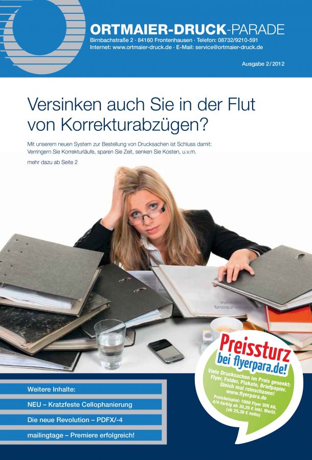 Von der Visitenkarte, über Flyer bis hin zum 208-seitigen Katalog sind wir Ihr Druckpartner! Egal ob Folder, Broschüren, Stanzbroschüren, Mappen, Mailings, lackiert, personalisiert, geprägt, nummeriert - wir erfüllen Ihre Werbewünsche mit bestem Service!