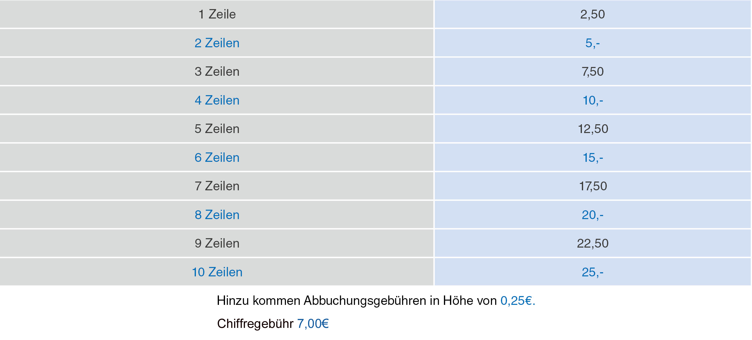 Preise in Euro (inkl. MwSt.) pro Woche für die Anzahl der angekreuzten Ausgaben: